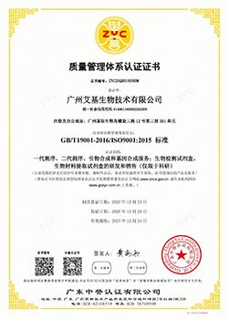 2020年12月,廣州艾基生物技術有限公司迎來了企業發展的又一重要里程碑。經過嚴格的評審和考核,艾基生物成功獲得了國際權威標準組織——國際標準化組織(ISO)頒發的ISO 9001質量體系認證。這一成就標志著艾基生物在質量管理和產品質量方面達到了國際標準,進一步鞏固了其在生物科技領域的領先地位。