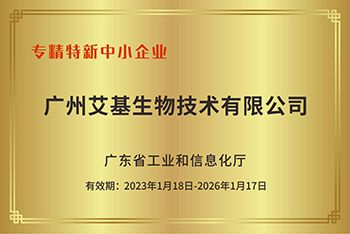 2023年1月,廣州艾基生物技術有限公司在持續的創新和發展中再獲殊榮,成功被廣東省相關部門認定為“專精特新”中小企業。這一認定不僅是對艾基生物在生物科技領域專業化、精細化、特色化和新穎化方面所做努力的肯定,也是對其未來發展潛力的認可。